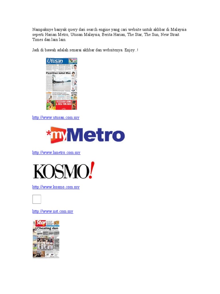 Related : Senarai Surat Khabar Di Malaysia - Semua surat khabar terpilih termasuk yang diterbitkan di sabah dan sarawak terdapat dalam koleksi rujukan perpustakaan negara malaysia..